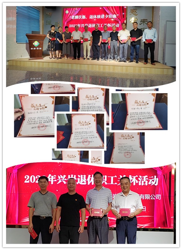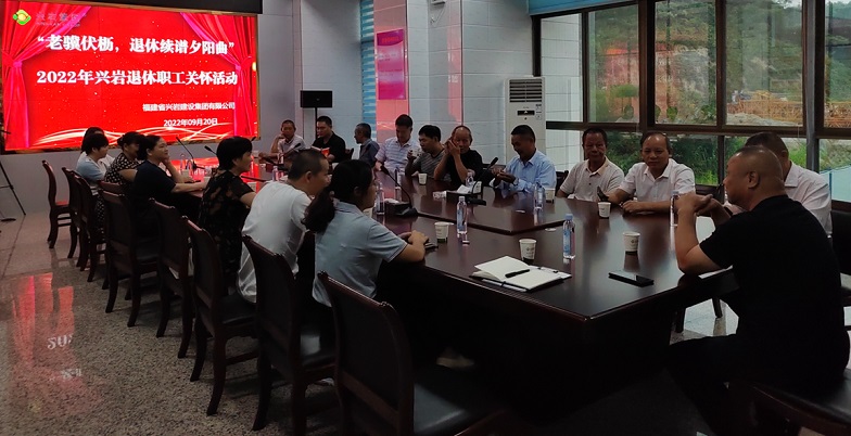 2022年9月20日,興巖集團(tuán)開(kāi)展“老驥伏櫪•退休續(xù)譜夕陽(yáng)曲”職工關(guān)懷活動(dòng)。集團(tuán)董事長(zhǎng)葉小清、人力行政部葉美莉、資質(zhì)證件部胡菊芳等多個(gè)部門(mén)領(lǐng)導(dǎo)出席。感謝前輩們?cè)趰徫簧系男燎诟冻,為公司的發(fā)展奉獻(xiàn)了青春!