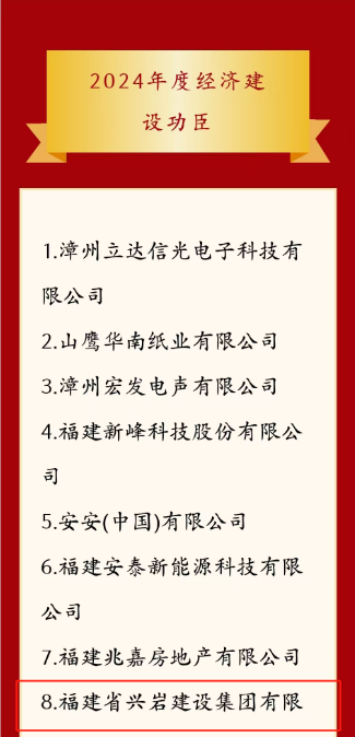 春風(fēng)送暖傳佳訊,捷報(bào)頻來賀歲新!2025 年 2 月 7 日,中共漳州市長(zhǎng)泰區(qū)委、漳州市長(zhǎng)泰區(qū)人民政府發(fā)布《關(guān)于表揚(yáng) 2024 年度納稅大戶的決定》,興巖集團(tuán)因 2024 年納稅額 1000 萬元以上,榮獲漳州市長(zhǎng)泰區(qū) 2024 年度“經(jīng)濟(jì)建設(shè)功臣獎(jiǎng)”榮譽(yù)。在此之前,興巖集團(tuán)已多次獲此殊榮,感謝長(zhǎng)泰區(qū)委、區(qū)政府對(duì)興巖的表彰與認(rèn)可,興巖集團(tuán)也將會(huì)保持初心,繼續(xù)前行,同時(shí)也感謝每一位集團(tuán)成員的付出和努力,這份榮譽(yù)將讓我們繼續(xù)保持熱情和動(dòng)力,繼續(xù)加油!