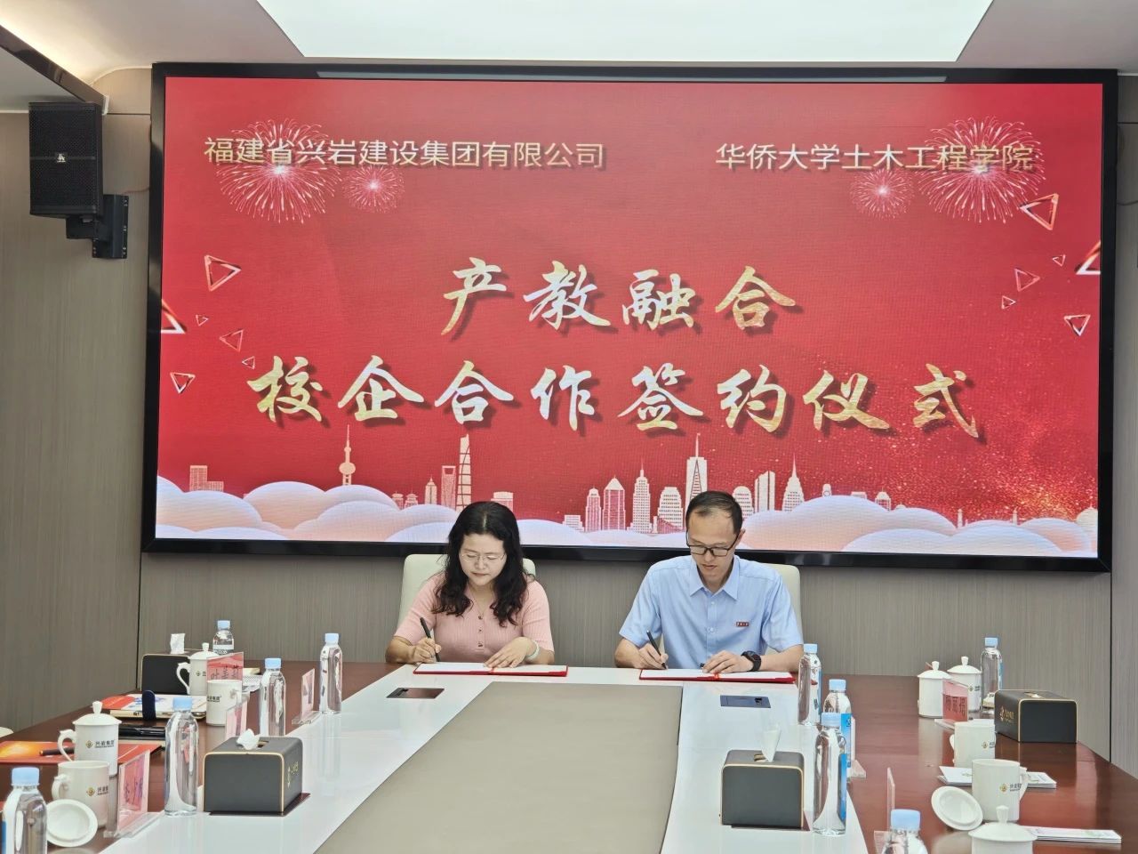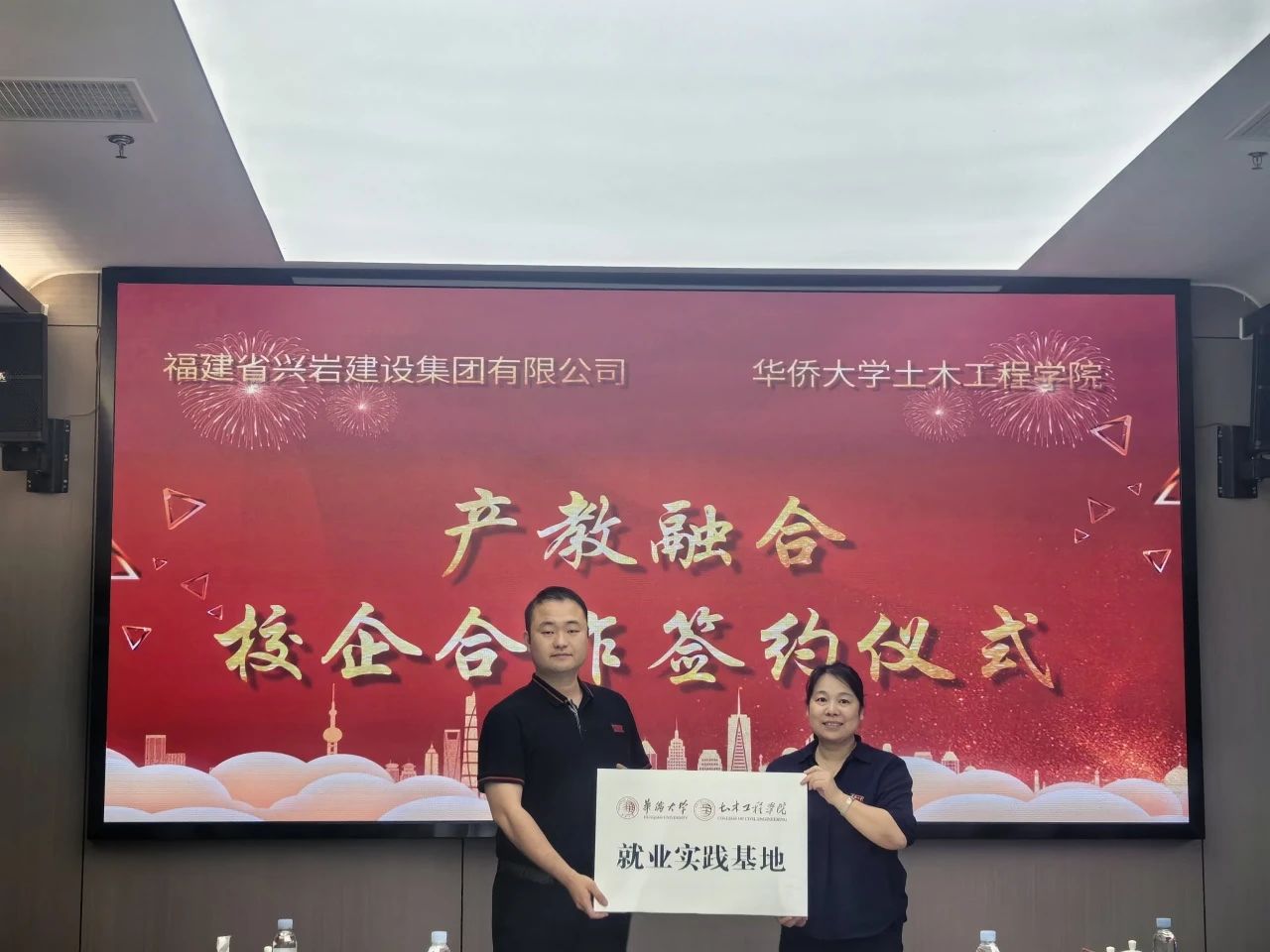 總經(jīng)理葉永斌鄭重接受學(xué)院黨委書記陳雪琴授牌,這一莊重時(shí)刻,標(biāo)志著興巖建設(shè)集團(tuán)與華僑大學(xué)土木工程學(xué)院的合作正式啟航。此次攜手華僑大學(xué),是興巖建設(shè)集團(tuán)在人才戰(zhàn)略布局上的重要舉措。華僑大學(xué)作為知名高校,在土木工程領(lǐng)域擁有雄厚的師資力量與豐富的學(xué)術(shù)資源;興巖建設(shè)集團(tuán)作為行業(yè)內(nèi)的佼佼者,具備豐富的項(xiàng)目實(shí)踐經(jīng)驗(yàn)與廣闊的發(fā)展平臺。雙方強(qiáng)強(qiáng)聯(lián)合,未來將在人才培養(yǎng)方面,共同探索創(chuàng)新教育模式,為學(xué)生提供理論與實(shí)踐相結(jié)合的優(yōu)質(zhì)學(xué)習(xí)機(jī)會;在實(shí)習(xí)就業(yè)方面,為華大學(xué)子提供更多實(shí)習(xí)崗位與就業(yè)機(jī)會,幫助學(xué)生順利邁向職場;在科研創(chuàng)新方面,整合雙方優(yōu)勢資源,共同攻克行業(yè)技術(shù)難題,推動建筑行業(yè)的科技進(jìn)步。