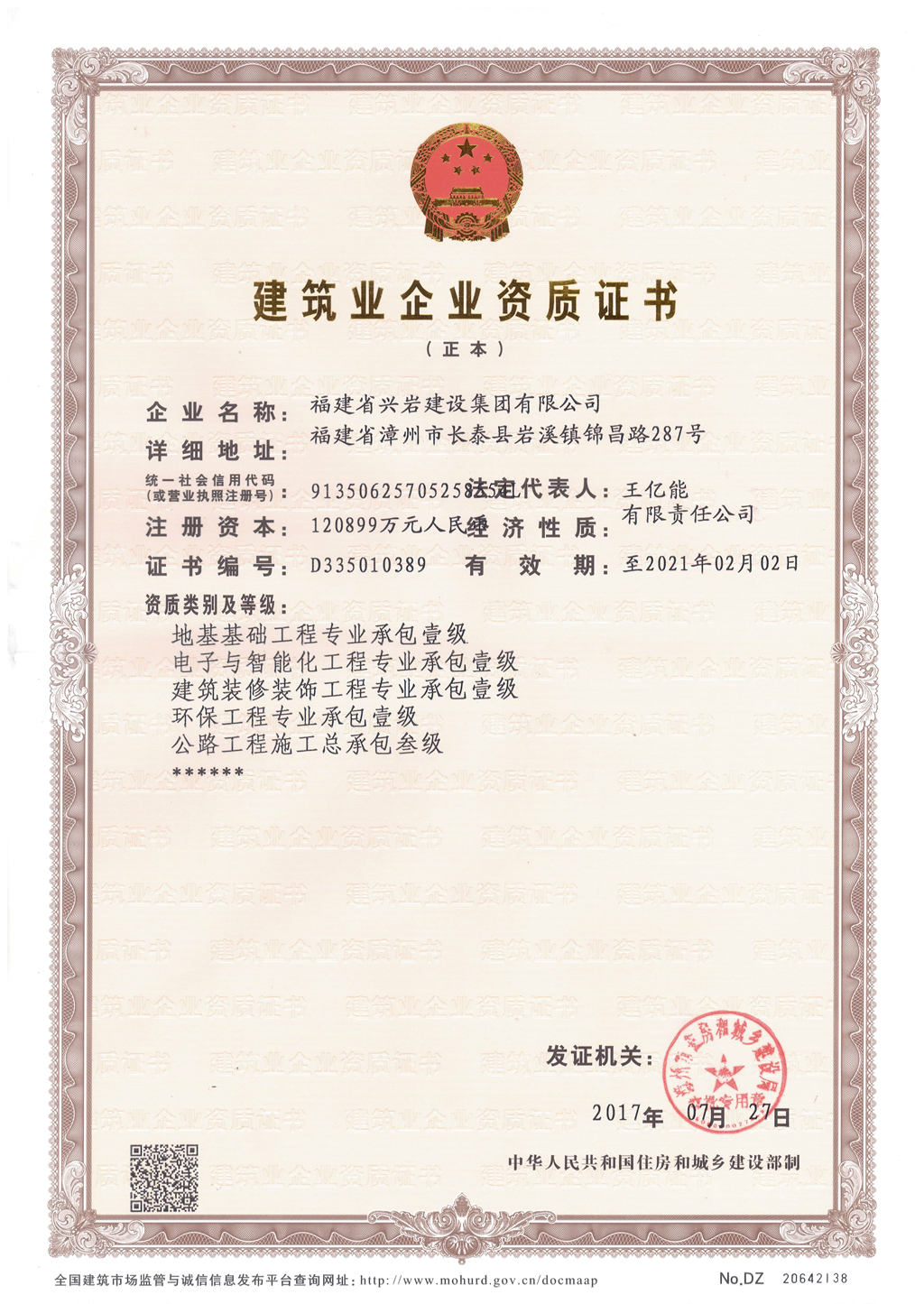 地基與基礎(chǔ)、建筑裝飾、環(huán)保工程、建筑智能化一級(jí)、公路總承包三級(jí)